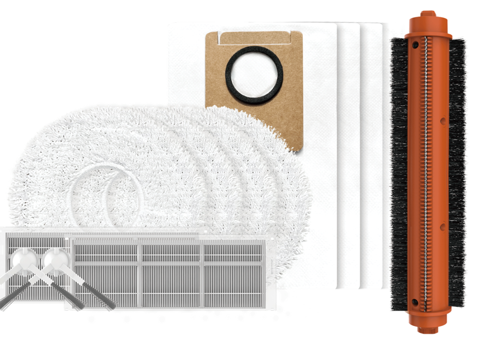 1x Pöördlev harjarull 2x külghari 2x filter 4x mopp 4x tolmukott